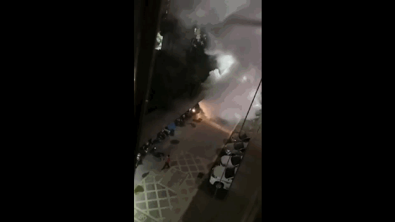 連續的幾聲爆炸聲響後,現場濃煙也越來越多,附近居民都連忙躲避。