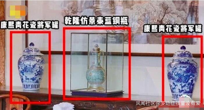 3/14 當天一進王剛老師的家中,映入眼簾的是乾隆的寶貝泰藍銅瓶了,這個古董也是價值連城的哦,包括旁邊的兩個康熙的青花瓷將軍罐。