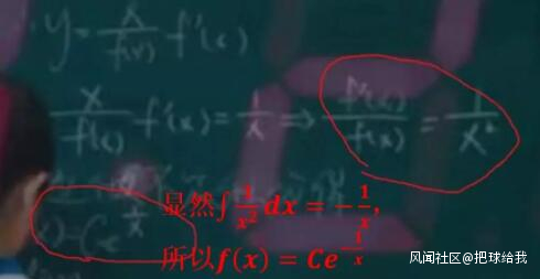 此外,右上角女主的常微分方程也解錯了。我們小學3年級就學過,1/(x^2)的原函數是-1/x,不是1/x。顯然,女主連積分表都背不好。