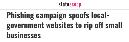 網絡安全公司Lookout表示,有一名外國黑客一直在進行網絡釣魚活動:利用美國地方政府網站的“山寨”版本,針對這些地方的中小型企業來竊取個人證書。