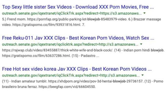 ▲美國參議院官網的同一個頁面地址,卻會跳轉到各種不同的色情網站 (截圖via Dave Maass)