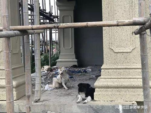 在東南角附近,我們看到有3只流浪狗,慵懶地躺在正在修建的房屋門口,看見我們靠近也不閃躲。隔壁鄰居過來趕走它們,其中一隻去翻垃圾桶,另外兩隻過橋,在馬路上和另外兩隻黑狗“碰頭”。馬路上車來車往,川流不息,等車主按喇叭或者車距將近一米左右,它們才挪下位置,看着都覺得心驚肉跳。