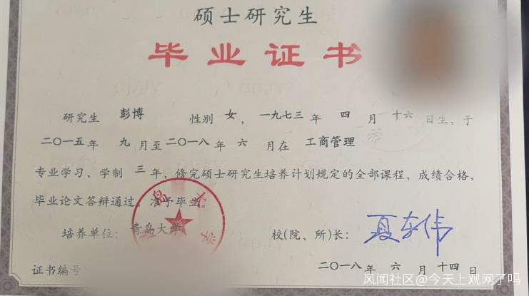 據瞭解,在濟南農商銀行早前發佈的聲明中指出,舉報人彭博1970年4月出生。但是其他網傳信息也稱,彭博本人是1973年出生。新京報《緊急呼叫》通過學信網查詢,彭博的畢業證書顯示其為1973年出生。