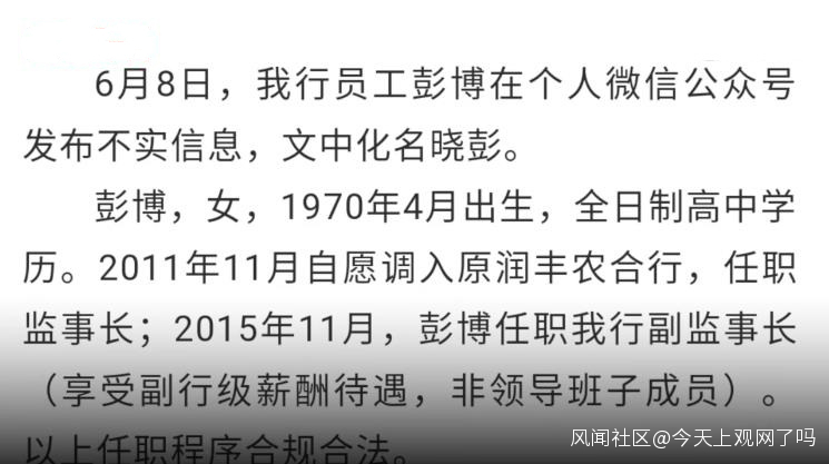 6月11日,舉報山東廳級幹部事件持續發酵。濟南農商銀行回應此事稱,彭博1970年出生,全日制高中學歷。彭博表示,自己系函授南開大學本科,在職修完碩士研究生課程。自己真實年齡是1970年,身份證年齡弄錯了。