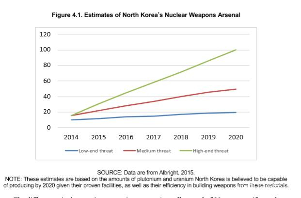 到2020年,按照最“樂觀”估計,朝鮮擁有20枚核彈……最“悲觀”則是100發……