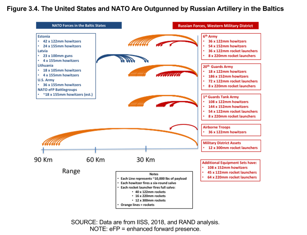 按照蘭德公司的報告,為了保護波羅的海三國,準備與俄羅斯開戰時,美軍在這一方向可以動用的兵力目前只有一個裝甲旅和6個戰鬥機中隊,而如果要戰勝俄軍,美軍需要的兵力包括: