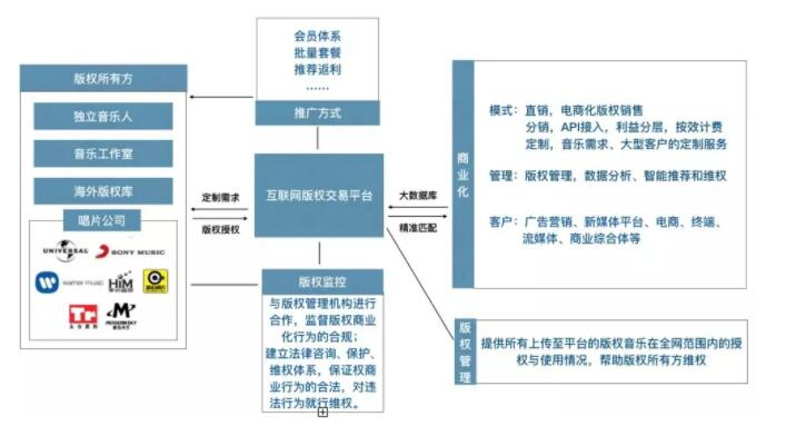 綜合一下,網易雲音樂和TME在版權分發行業的佈局模式如下(請注意下圖的“版權分發平台”的核心位置):