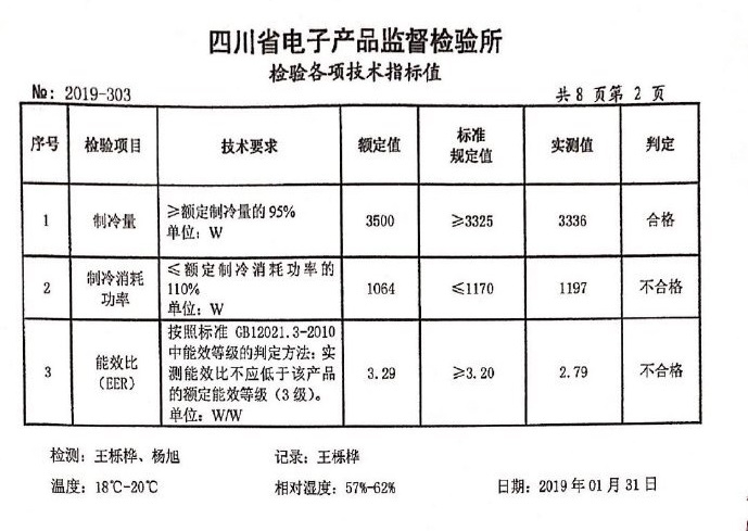 從格力一方提供,由四川電子檢驗所出具的檢驗報告來看,奧克斯的空調並不存在嚴重的質量問題,也不是性能問題,而是能效比存在虛標的問題。換而言之,也就是不節能,奧克斯被送檢的幾款產品能效比嚴重虛標,與自己標稱的額定值差值很大,也遠遠小於法定的3.2。