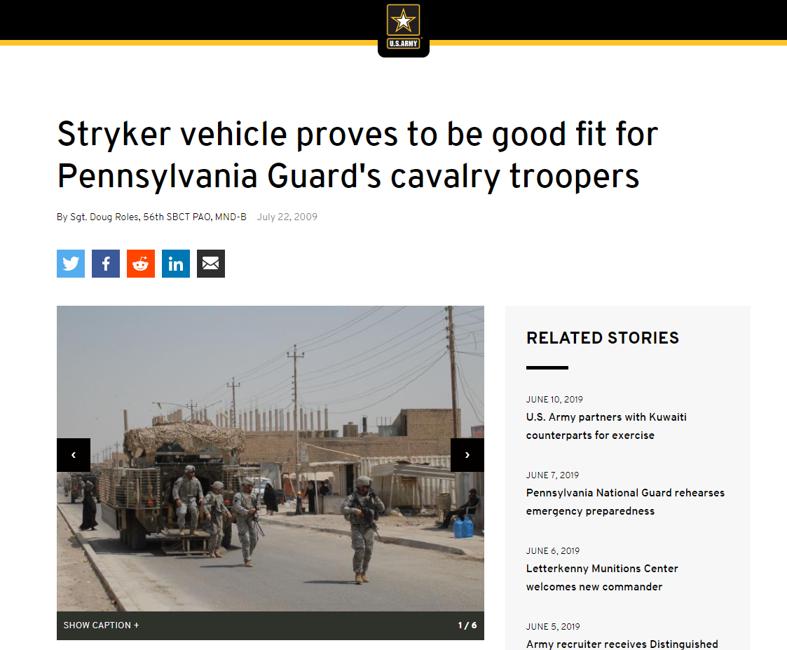 在面對伊拉克使用RPG-7和輕重機槍的恐怖分子時,斯特賴克表現良好