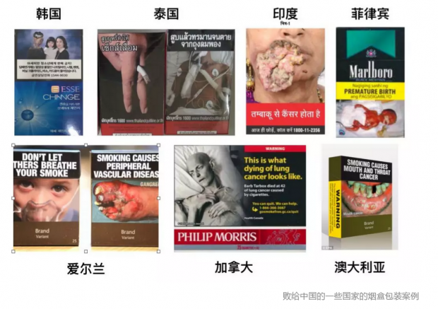 各國要求煙盒包裝呈現警示圖片的目的是顯而易見的:通過這些恐怖而真實的圖片,傳達健康相關信息,勸告吸煙者戒煙。
