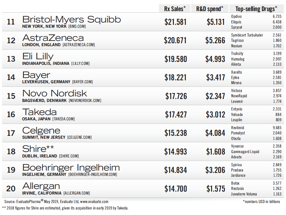 AbbVie憑藉Humira逼近200億美元的銷售收入取得歷史最佳名次第7名;