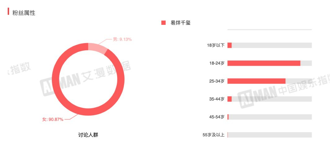也就是説,易烊千璽的粉絲人羣,以“姐姐粉”和“阿姨粉”為主。