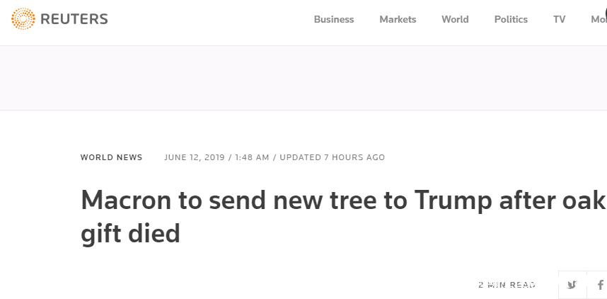 送給特朗普的“友誼之樹”死了,馬克龍:再送一棵就是了,沒啥大不了_風聞