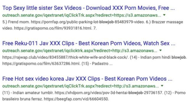 Several redirects from the U.S. Senate’s page point users to such cinematic classics as “Thick White Wife and Black Cock” and “POV 3D Hentai Blowjob.”