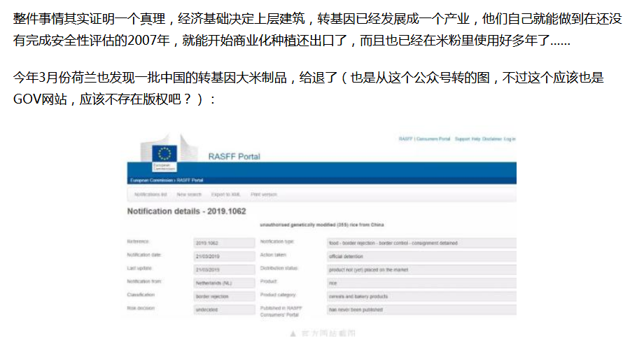 然而,一個網友扒皮挺轉的謊言,指出轉基因在未經安全性評估的情況下,已經偷偷種植並出口