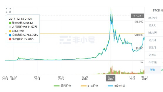 不得不承認,波場一開始市場運營就非常厲害,營銷好、知名度高,登陸的交易所也不斷增加。更重要的是,此時的比特幣已開始進入瘋狂階段。非小號行情顯示,2017年11月16日,比特幣報價7219美元,12月15日,比特幣價格達16512美元,一個月暴漲129%。