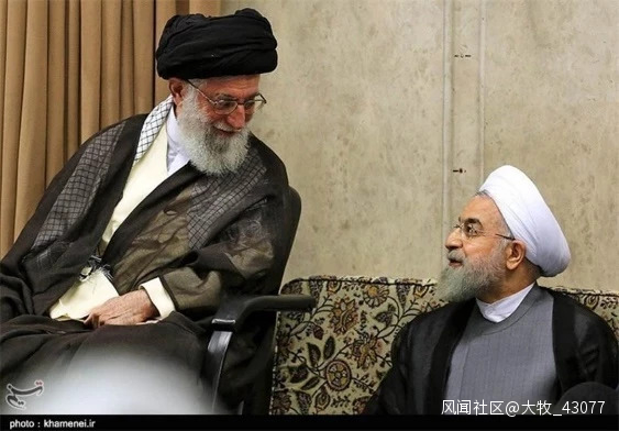 伊朗最高精神領袖哈梅內伊(左)和總統魯哈尼(右)(圖源:塔斯尼姆通訊社)