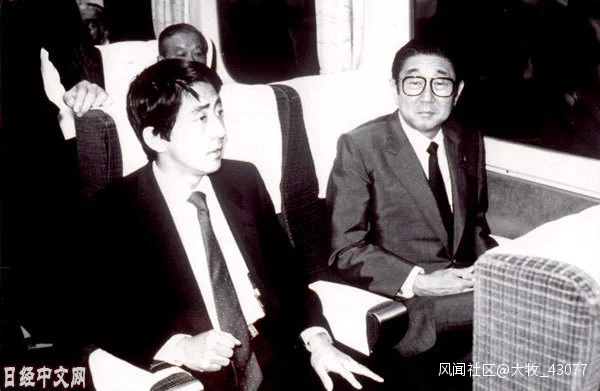 擔任秘書的安倍晉三(左)與父親安倍晉太郎(圖源:日經中文網)