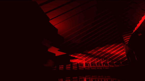 室內空間的頂面則是根據“扇面”排列,切成一條一條的放射狀,線條感非常強,極大地豐富了室內空間的層次。