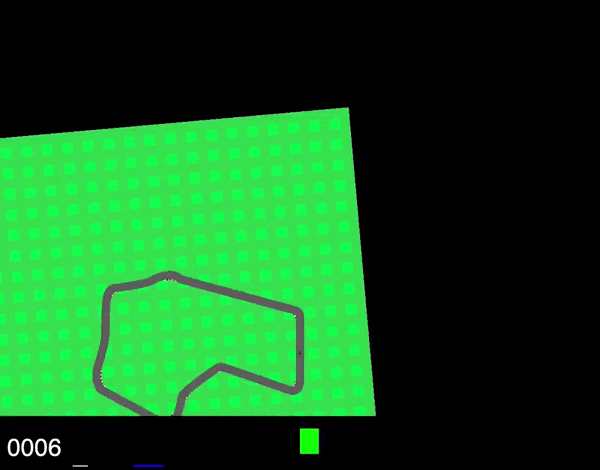 一輛車,由三個連續命令來控制:油門、轉向、制動。目標是在規定的時間裏,經過儘可能多的磚塊。賽道是隨機生成的。