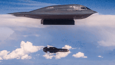 今年5月16日,美國空軍高調展示了一段B-2隱身戰略轟炸機投擲GBU-57A/B型巨型鑽地彈的畫面,MOP炸彈(GBU-57)是世界最強的鑽地彈,該彈全重14噸大概相當於一輛92式步兵炸車,能夠鑽地60米後摧毀地下目標,破壞力遠超“掩體粉碎機”GBU-28和“炸彈之母”GBU-43。這展現了美軍對地下核掩體的破壞能力,意圖很明顯就是威懾相關國家。