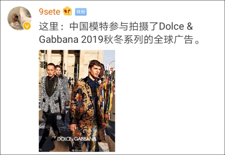 D&G辱華後三個月,有中國模特接了D&G的廣告與走秀_風聞