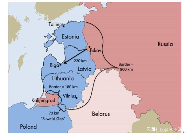 波羅的海地區的關鍵地理要素,蘇瓦吉谷地長70公里,而俄軍只需前進220公里就可以殺到里加,波羅的海三國與俄、白邊境線長達800公里,北約部隊駐軍不容易部署