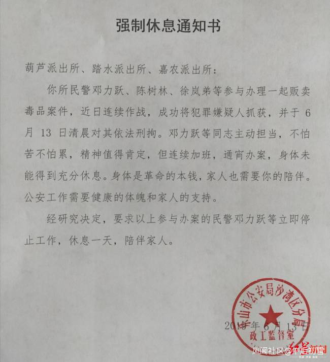 原來,這名司機是樂山市公安局沙灣區分局民警鄧力躍。近日,民警鄧力躍、陳樹林、徐嵐弟等三人蔘與辦理一起販賣毒品案件,連續作戰,成功將犯罪嫌疑人抓獲。6月13日上午7時許,通宵辦案後鄧力躍回家途中,因為實在太累了,開車等紅綠燈時居然睡着了。得知此事後,沙灣區分局分局政工科立即給三名民警下發了