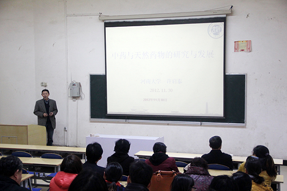 2012年11月30日許啓泰在鄭州澍青醫學高等專科學校做報告 圖片來自鄭州澍青醫學高等專科學校官網