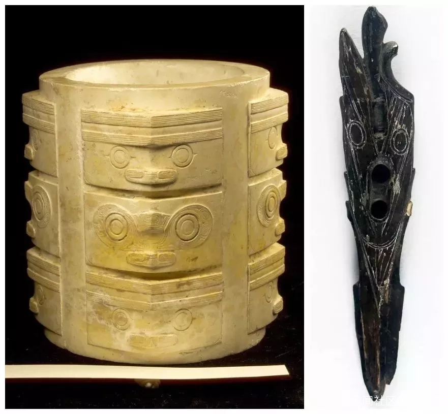 左為浙江出土的良渚玉器,右為因紐特人的狩獵用具哈噴器頭