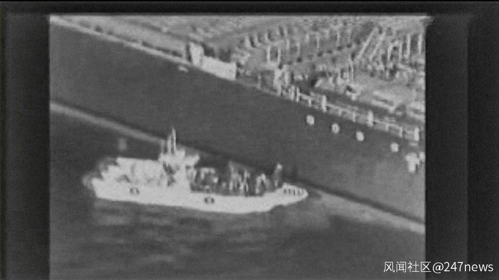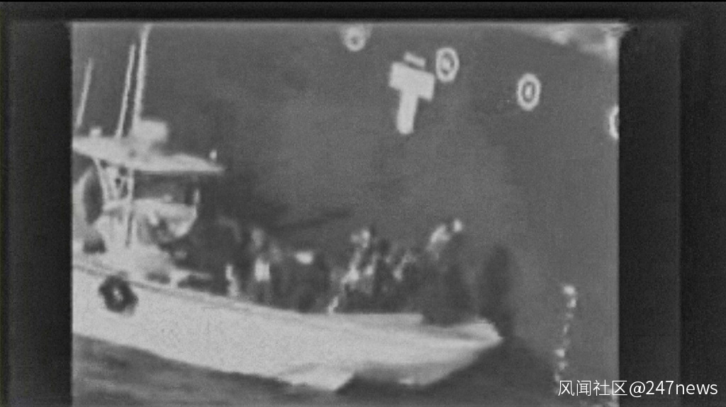 視頻片段顯示多人乘坐小艇靠近日本油輪。來源美國中央司令部發布的視頻截圖