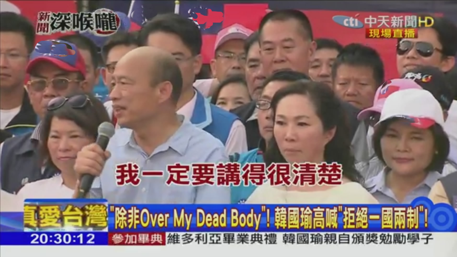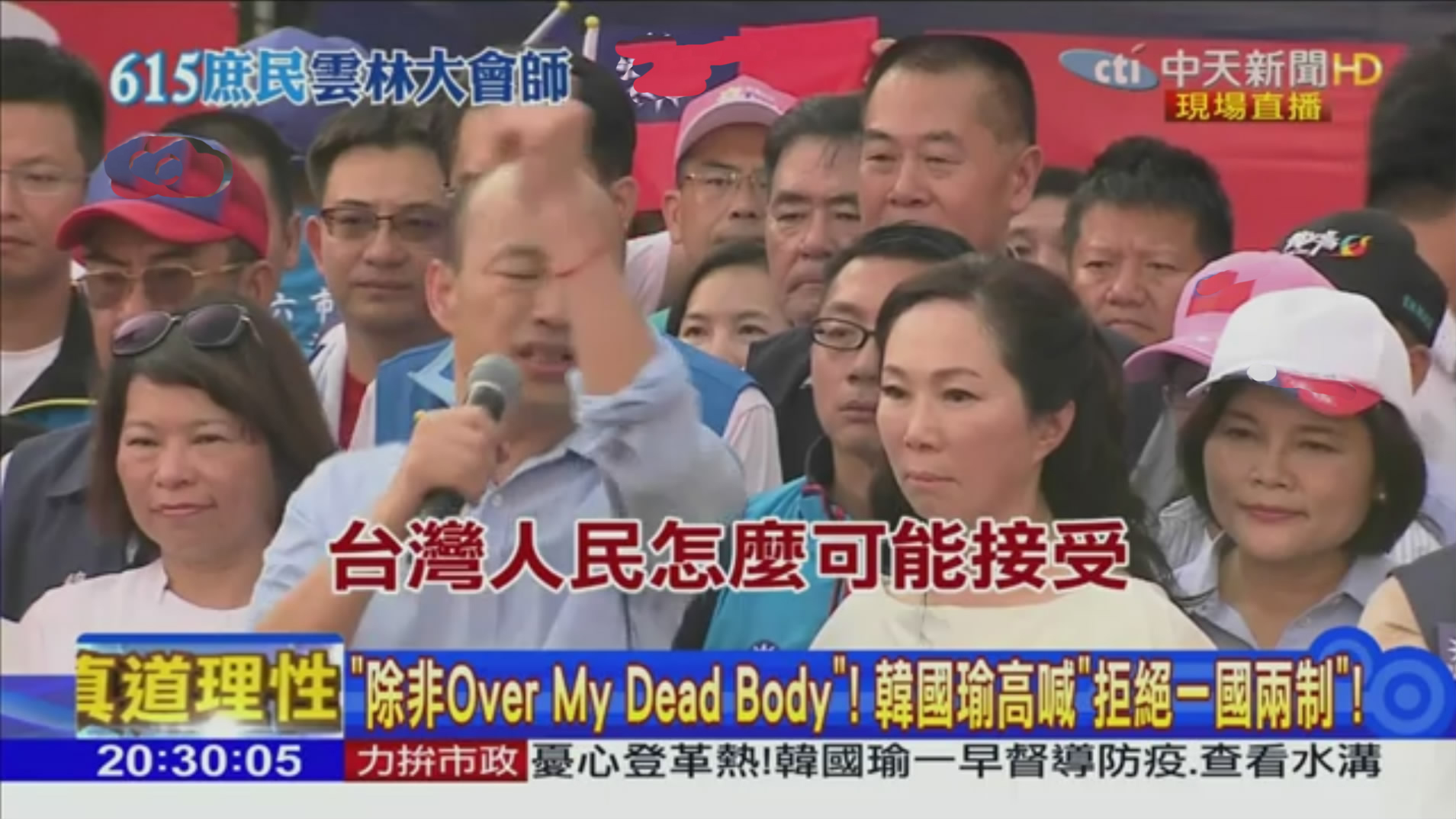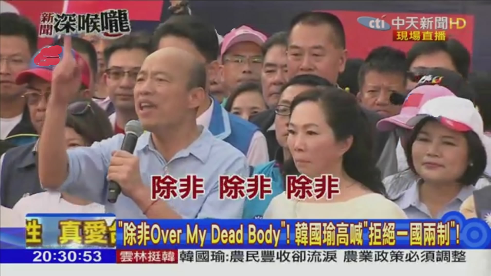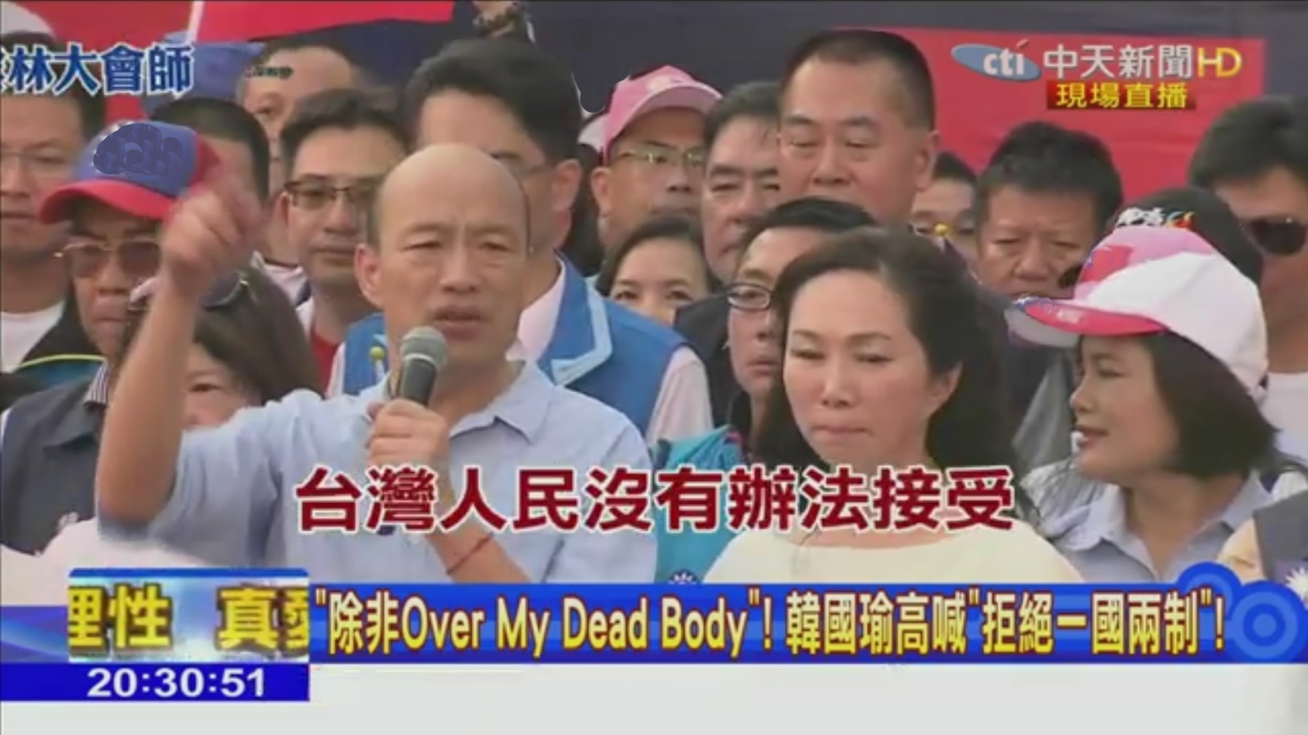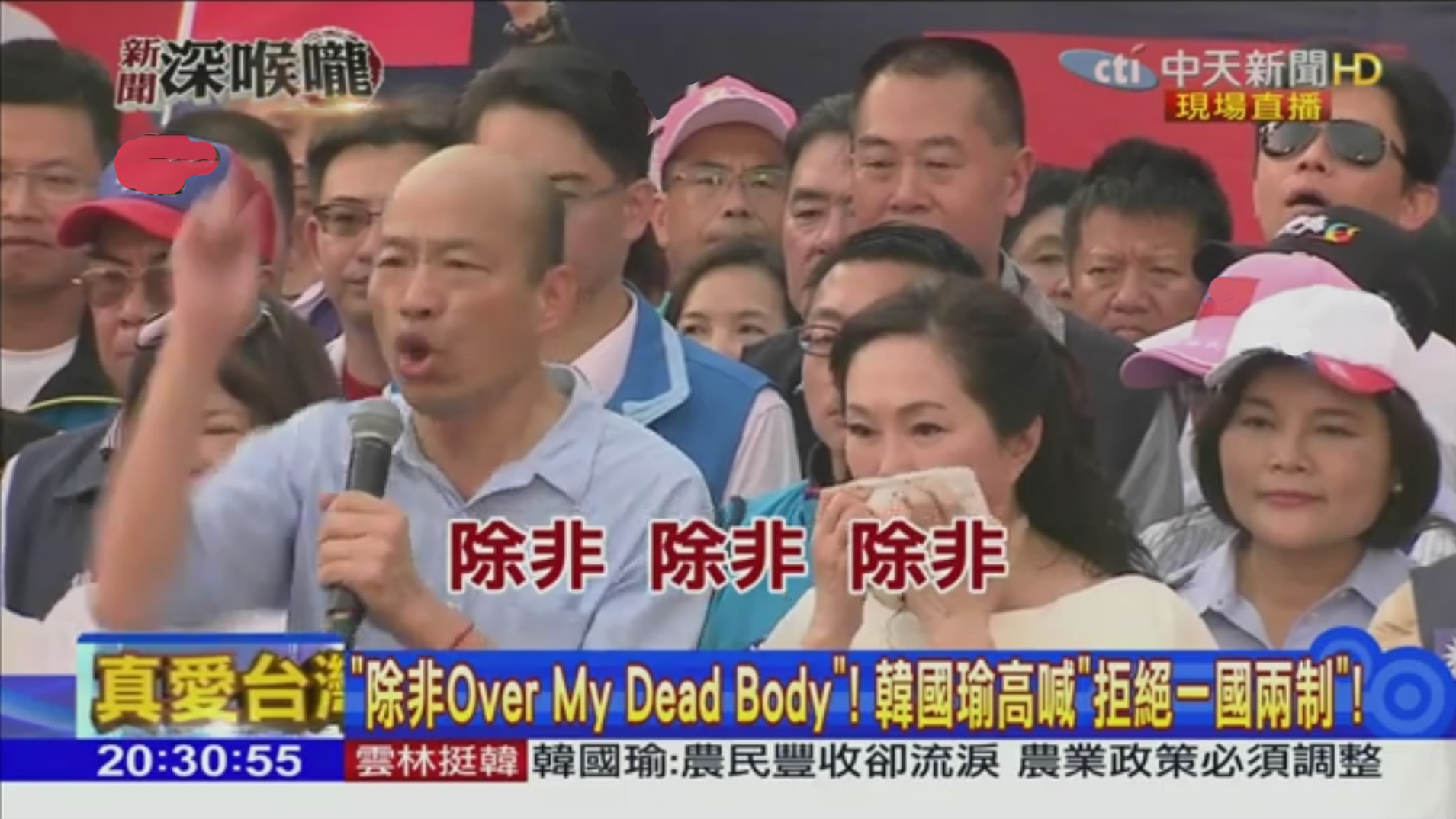 韓國瑜歇斯底里吶喊:除非踏過我的屍體!台灣絕不接受一國兩制!_風聞