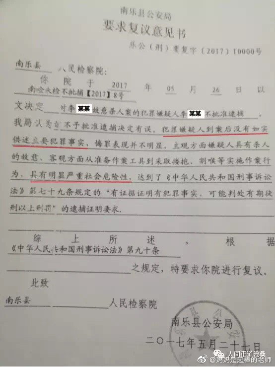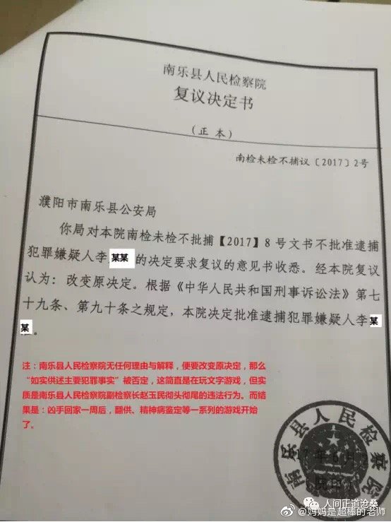 附《南樂縣人民檢察院不批准逮捕決定書》、《南樂縣人民檢察院不批准逮捕理由説明書》、《南樂縣公安局要求複議意見書》、《南樂縣人民檢察院複議決定書》、《南樂縣人民檢察院起訴書》、《南樂縣人民檢察院變更起訴決定書》相關圖片: