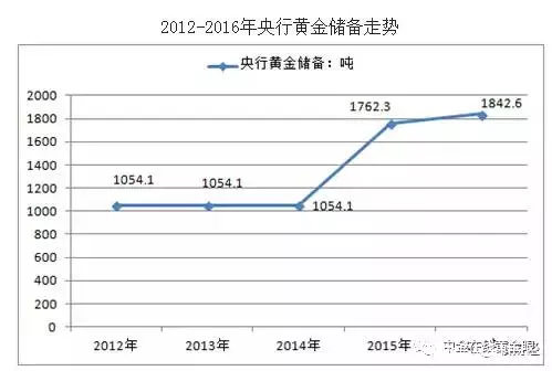 不過從那之後中國的黃金儲備也漸漸的確實多起來了,下圖是2012-2016年央行黃金儲備走勢圖: