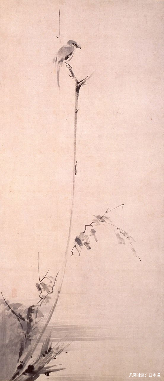宮本武藏所繪的水墨畫《枯木鳴鶪圖》(和泉市九保惣紀念美術館藏)《五輪書》中寫道宮本武藏將練習書畫等藝術作為鍛鍊劍術的手段