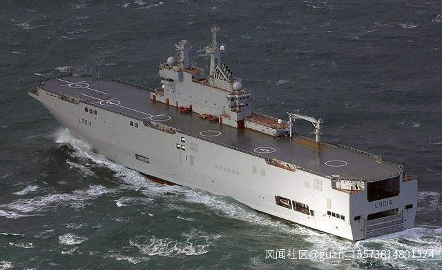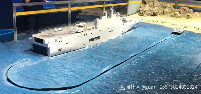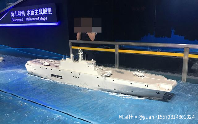 那我們來猜想一下,目前很多人都傾向於某些軍事模型展上的兩棲攻擊艦模型,為何大家都傾向於那款的外形呢?我想是因為國外防務展上,中船重工多次展示過中國外貿兩棲攻擊艦的模型,也因此在其基礎上就冒出了所謂海軍版兩棲攻擊艦的模型來。其最大的特點是艦艏左右舷凹下的平台上各佈置這兩座單管100mm炮,這樣的佈局給大家的印象就是美國海軍"塔拉瓦"級兩棲攻擊艦的特徵(後期也拆掉了兩座主炮),當然了法國海軍的"西北風"級兩棲攻擊艦也有這樣的設計,但並沒有配置兩門主炮。然而艦島的設計與法國海軍的"西北風"級極其相似,所以這個所謂的中國海軍版兩棲攻擊艦模型很明顯是抄襲了法國貨的外觀,但在艦艏左右佈置大口徑火炮又模仿了美國貨,可以説簡直就是四不像,的確值得懷疑。