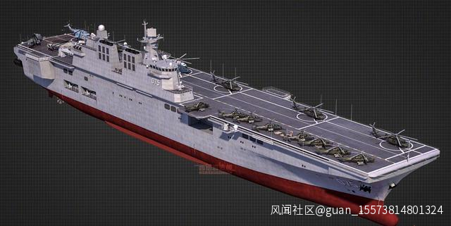 主要是中國海軍單管100mm炮早就停產了,這一點就否定模型的外觀設計。據透露噸位的某大佬在某論壇上也説了,武器裝備為十一管30mm炮和HQ-10防空導彈,這樣的配置與航母是一致的。所以我猜想國產兩棲攻擊艦的外觀一定不是網上流傳的模型那個樣子,我覺得甚至其會有舷外升降機(該模型竟然只有一台升降機),這樣才能保證飛行甲板的利用率,再加上不是很佔位置的尾部升降機,這樣的設計與美國海軍的"黃蜂"級類似,對於中國海軍這個最大的美粉,將國產兩棲攻擊艦的外形設計得更像美國貨,這個道理還是講得通的。