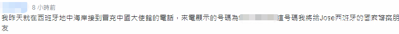 時隔一週,台當局駐西班牙代表又跳出來拿西班牙遣返94名嫌疑人到大陸説事。此時不僅有網友直接在台媒報道下回嗆,甚至還有人直接分享自己接到詐騙電話的經歷:我昨天就在西班牙地中海沿岸接到冒充中國大使館的電話;“詐騙犯囂張吧?”