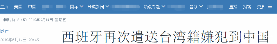 除此之外,就連美媒此時也出來“打臉”台當局,在報道台當局駐西班牙代表的言論時放出了西班牙政府6月13日再次遣送2名台籍嫌疑犯到大陸的消息。