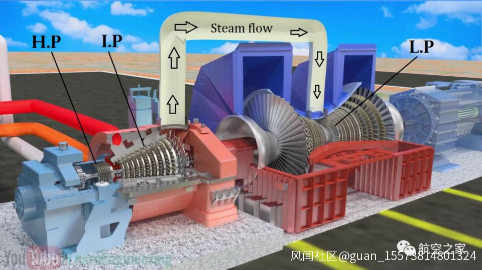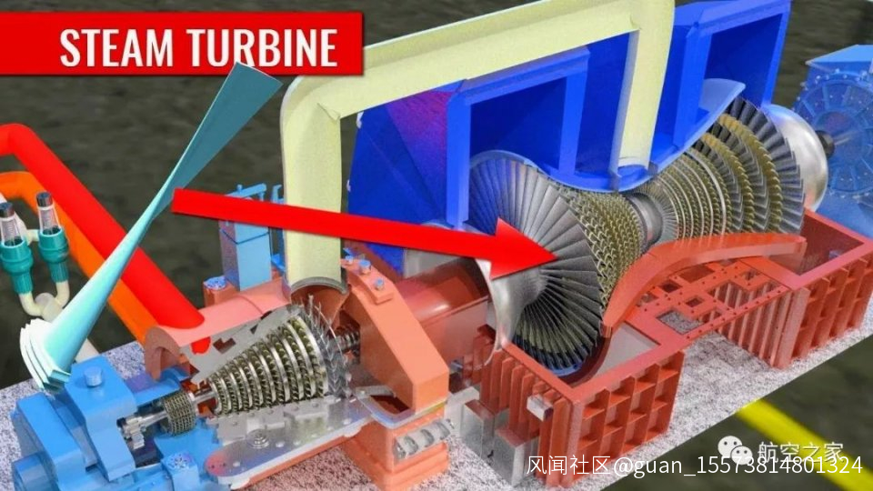 蒸汽渦輪發動機是將水加熱後形成的蒸汽動能轉化為渦輪轉動動能的機械裝置。這遠超過了詹姆斯·瓦特發明的單級往復式蒸汽機效率,更為接近熱力學中的理想可逆過程,而且還能產生更大的功率。目前熱電廠使用的就是渦輪蒸汽機裝置,有超過八成的電能都來自渦輪蒸汽機。大型船舶的動力