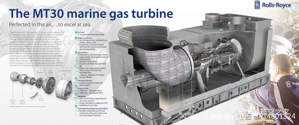 而燃氣輪機則是驅逐艦的最佳選擇,全球最先進的燃氣輪機是羅羅的MT30,其功率高達36000千瓦。目前搭載於“伊麗莎白女王”級航母、美海軍的“朱姆瓦爾特”級驅逐艦、“自由”級瀕海戰鬥艦上。