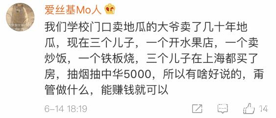 這個新聞出來之後,#大學畢業擺攤賣水被罵沒出息#也上了熱搜。