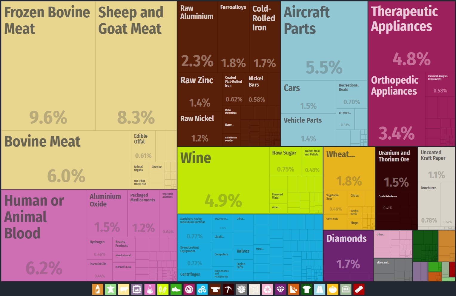 澳大利亞對美國的出口構成,以農產品為主,尤其是肉類