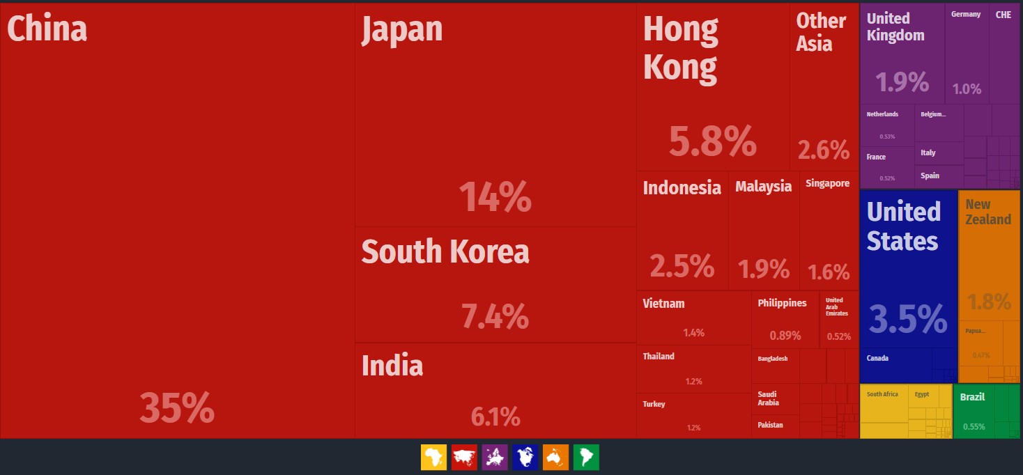 按國家的出口比重,中國更是穩居第一,加上香港,也達到位居第二的日本的250%了