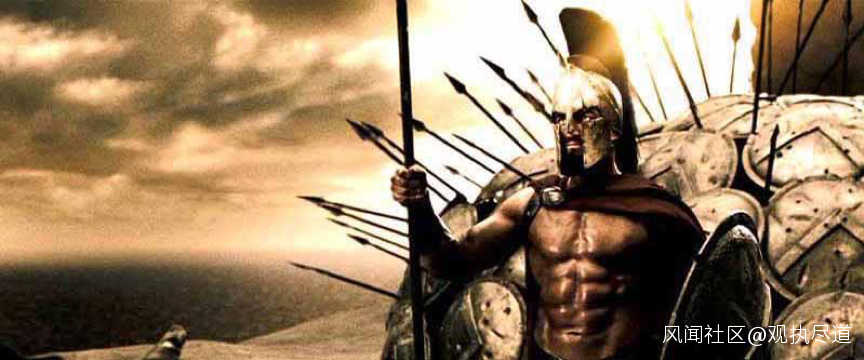 電影的結尾導演還將整個畫面拍攝入鏡頭,男主角手臂成十字被箭射穿倒地而且倒下的位置被戰死的斯巴達勇士為成一圈,這完全是一種具有強烈象徵性意義的宗教繪圖景象。導演用“基督教”的思想強行解讀古斯巴達勇士,所有的這些是在影射美國在其盟國極力反對的情況下悍然在2001年發動了對其所謂的“邪惡軸心伊拉克”的侵略戰爭。電影裏已經把反對美國出兵的歐洲盟友諷刺為喜歡小男孩的“懦夫和平主義者”。電影結尾對斯巴達戰士的犧牲用基督教思想為觀眾解讀小布什總統所領導的美國對中東的惡軸心發動的聖戰,以及美國人民為保衞“自由世界”所擔負着上帝賦予的責任包括所做出的犧牲。