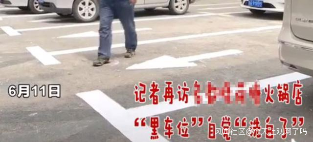 隨後交警趕到,經現場查看,該商家門前的多個停車泊位上均有黑漆塗改痕跡,下方的泊位標線和箭頭仍然可以看見。