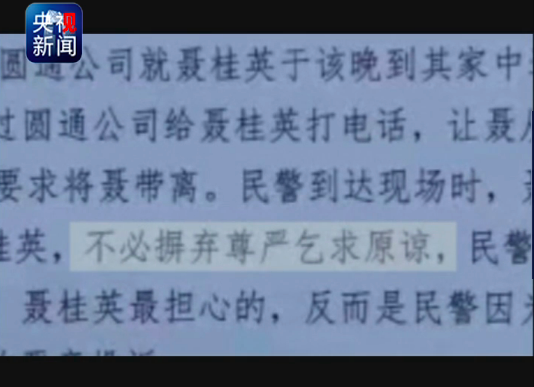 聶某某強調,其實糾紛發生在一個月以前,糾紛未解決,是因一直沒得到對方諒解。張家人則強調原本已原諒對方、人卻不走,張某某又強調圓通公司要給員工來家裏下跪這事做個回應。雙方相互對證又相互否定,張某某後來直接説不再原諒。聶某某顧慮難消,王海港許諾將以派出所的名義給她作證。在執法視頻的結尾處,王海港把聶某某叫到一邊,預判不會有和解的可能。