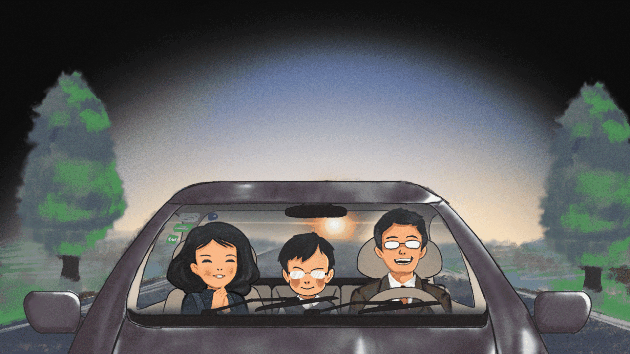 例如為了營造小學生的專屬氣氛,畫面風格採用了彩鉛,蠟筆風,一家三口非常魔性。