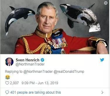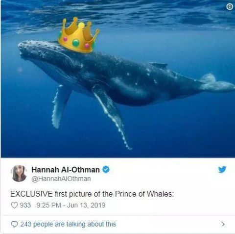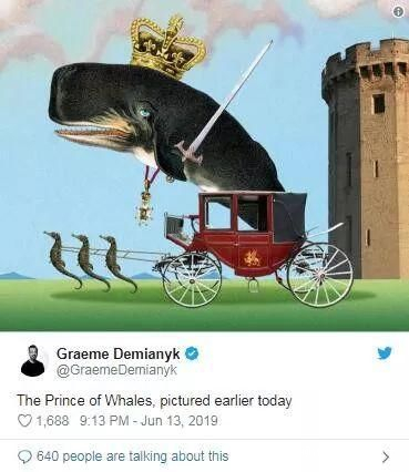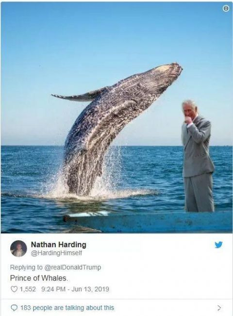 Meanwhile, some Twitter users replied to Mr Trump with mock-ups of what they thought a royal whale would look like。