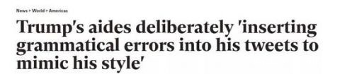 特朗普的助理們故意在他的推特中夾雜語法錯誤,來模仿他的風格